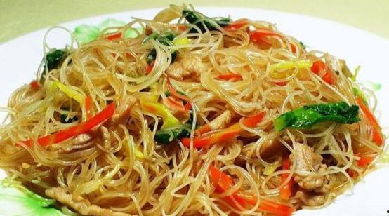 这里有个小技巧,就是在炒米粉的时候,可以加入一点水,这样可以让米粉更加滑嫩。炒到米粉变色,再加入青菜,继续翻炒。加入适量的盐、生抽、老抽等调料,翻炒均匀,一道美味的上海炒粉就完成了!